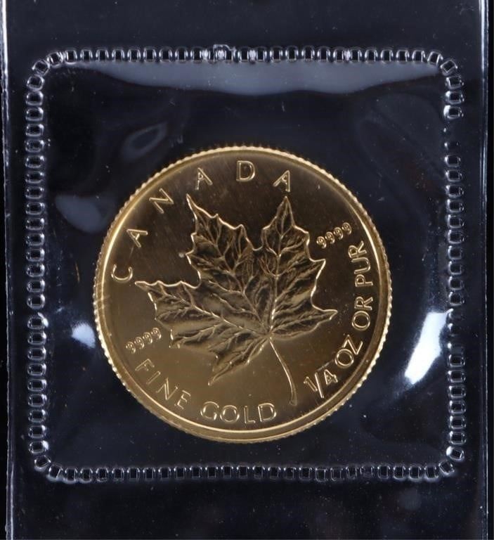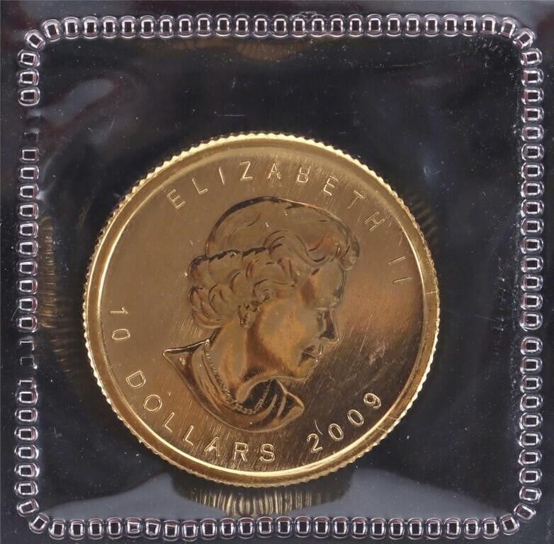 1/4 oz fine gold 2009 Canadian Maple Leaf $10 coin Mint State uncirculated condition.
