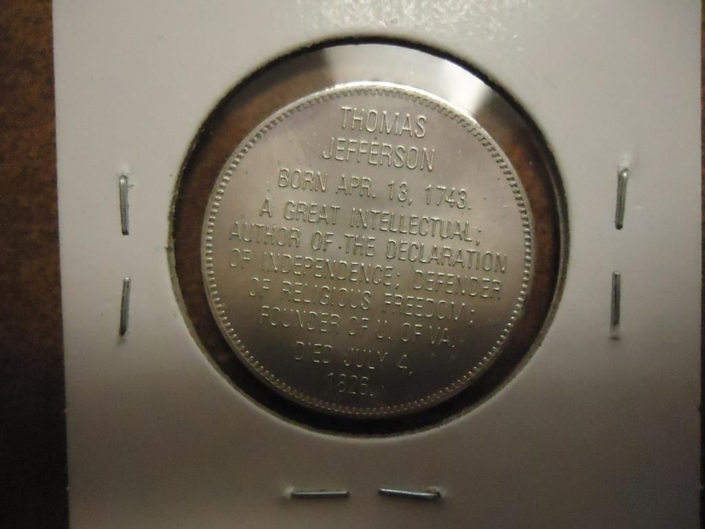 1/4 OZ. STERLING SILVER ROUND THOMAS JEFFERSON