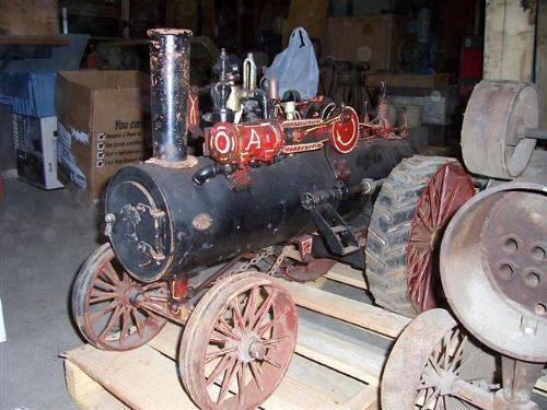 ¼ SCALE MODEL STEAM TRACTOR- THIS IS A HANDMADE SCALE MOEL STEAM TRACTOR THAT WILL BE OFFERED AT NO RESERVE IN OSLO, MN AT AUCTION 10-15-05. IT IS AN ADEVANCED RUMLEY MODEL TRACTOR. IT WAS FUNCTIONAL, BUT HAS NOT RUN FOR AWHILE. IT IS COMPLETE AND SELLING AS=IS. IT IS BLACK WITH RED DETAILING. IT HAS GREAT ATTENTION TO DETAIL. STEEL WHEELS- CHAIN DRIVE. GREAT ADDITION FOR ANY COLLECTOR. EXEMPT FROM MN BOILER INSPECTION