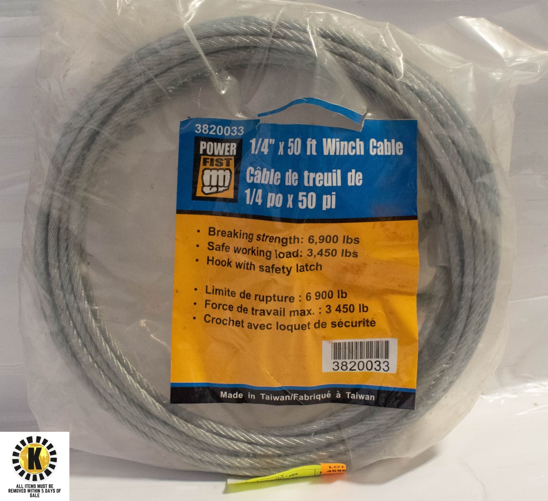 1/4" X 50FT POWER WINCH CABLE