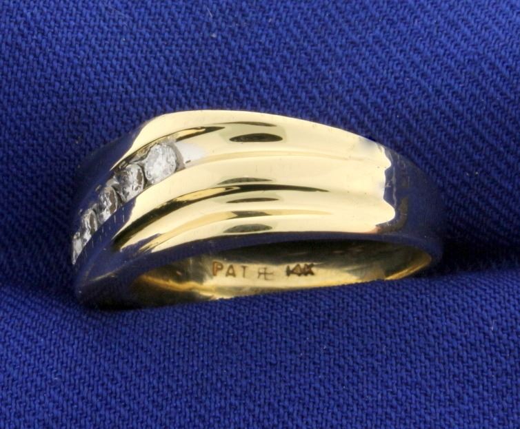 In 14k white and yellow gold. Contains five .05ct high quality diamonds, SI clarity/H color. Size 6 1/2. 10.9g.