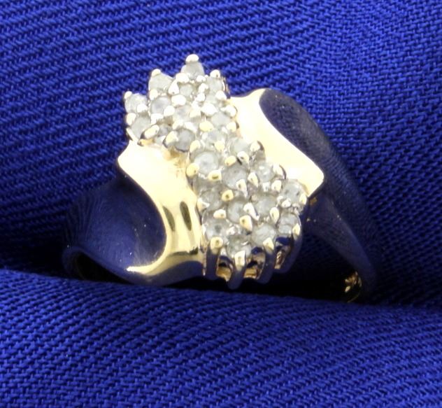 In 10K yellow gold, there are twenty five .01ct diamonds. Size 6 1/4 4.0g