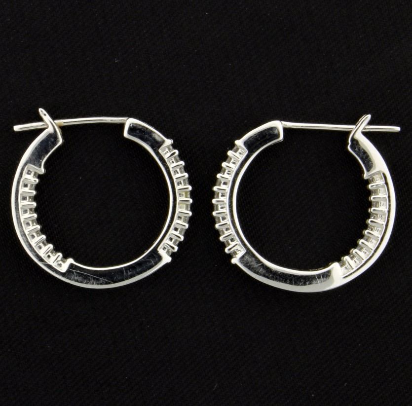 In 10K white gold, they are 3/4 inch long. Each earring contains nineteen high quality diamonds - SI clarity/G color. 3.5g