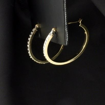 In 14k yellow and white gold each earring contains eighteen round diamonds.     1.2g
