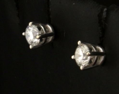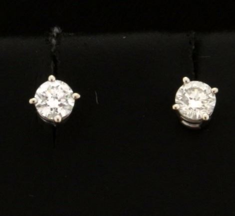 In 14k white gold basket setting, containing a high quality .12ct diamond in each earring, SI clarity/H color. Friction backs. .05g.