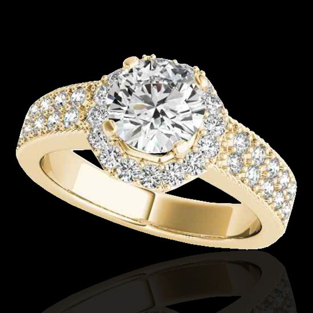 REF-204R5K - SKU: 34551 ---- 1.4 ctw Certified Diamond Solitaire Halo Ring 10k Yellow Gold