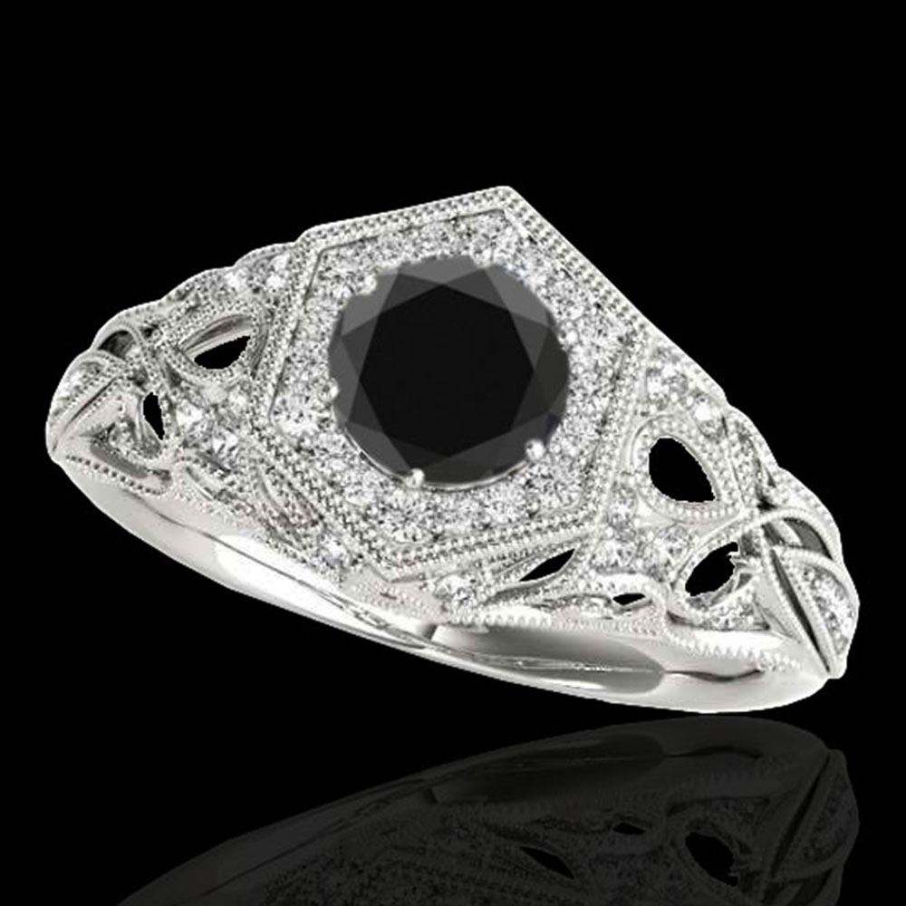 REF-59M2G - SKU: 34178 ---- 1.4 ctw Certified VS Black Diamond Solitaire Antique Ring 10k White Gold