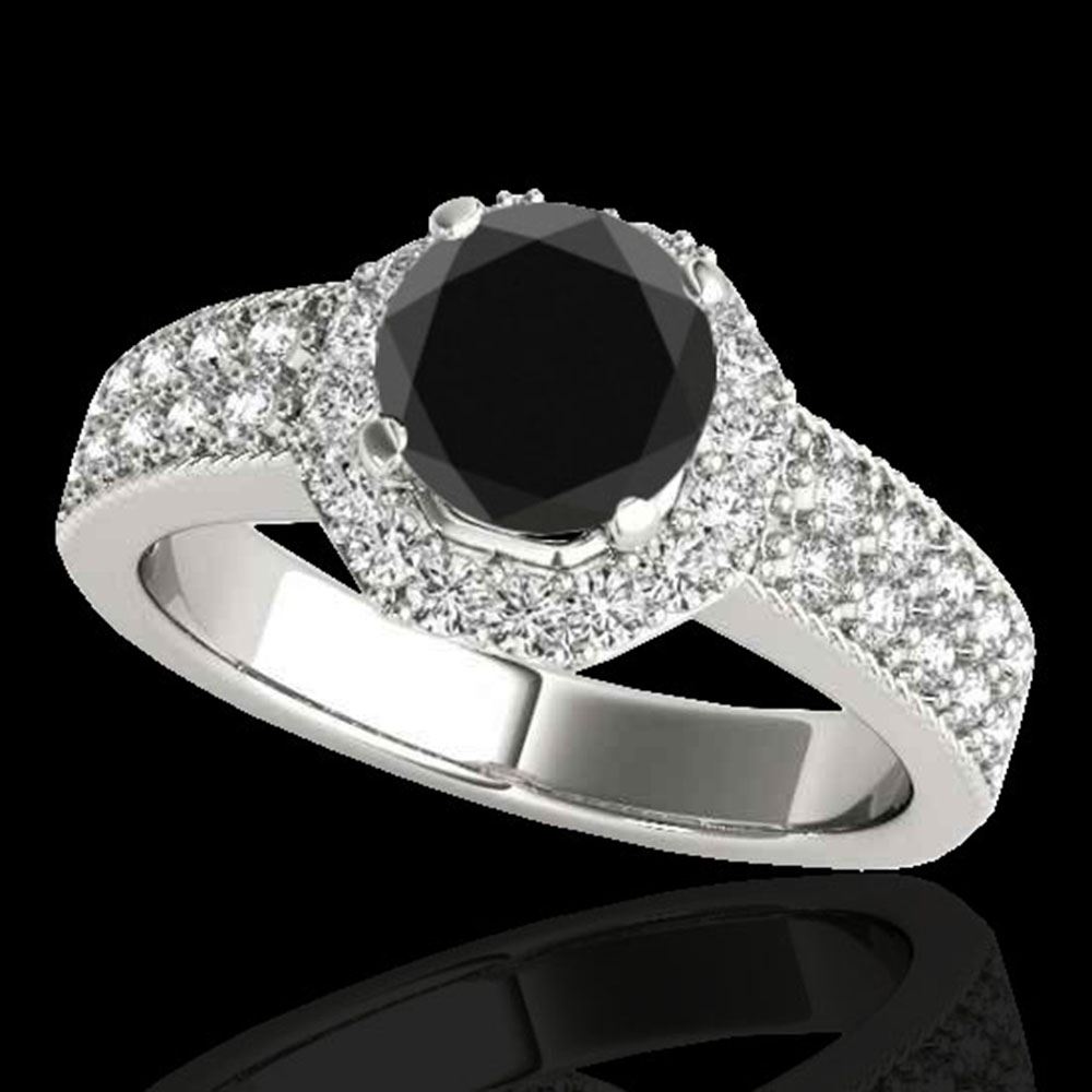 REF-55W8H - SKU: 34552 ---- 1.4 ctw Certified VS Black Diamond Solitaire Halo Ring 10k White Gold