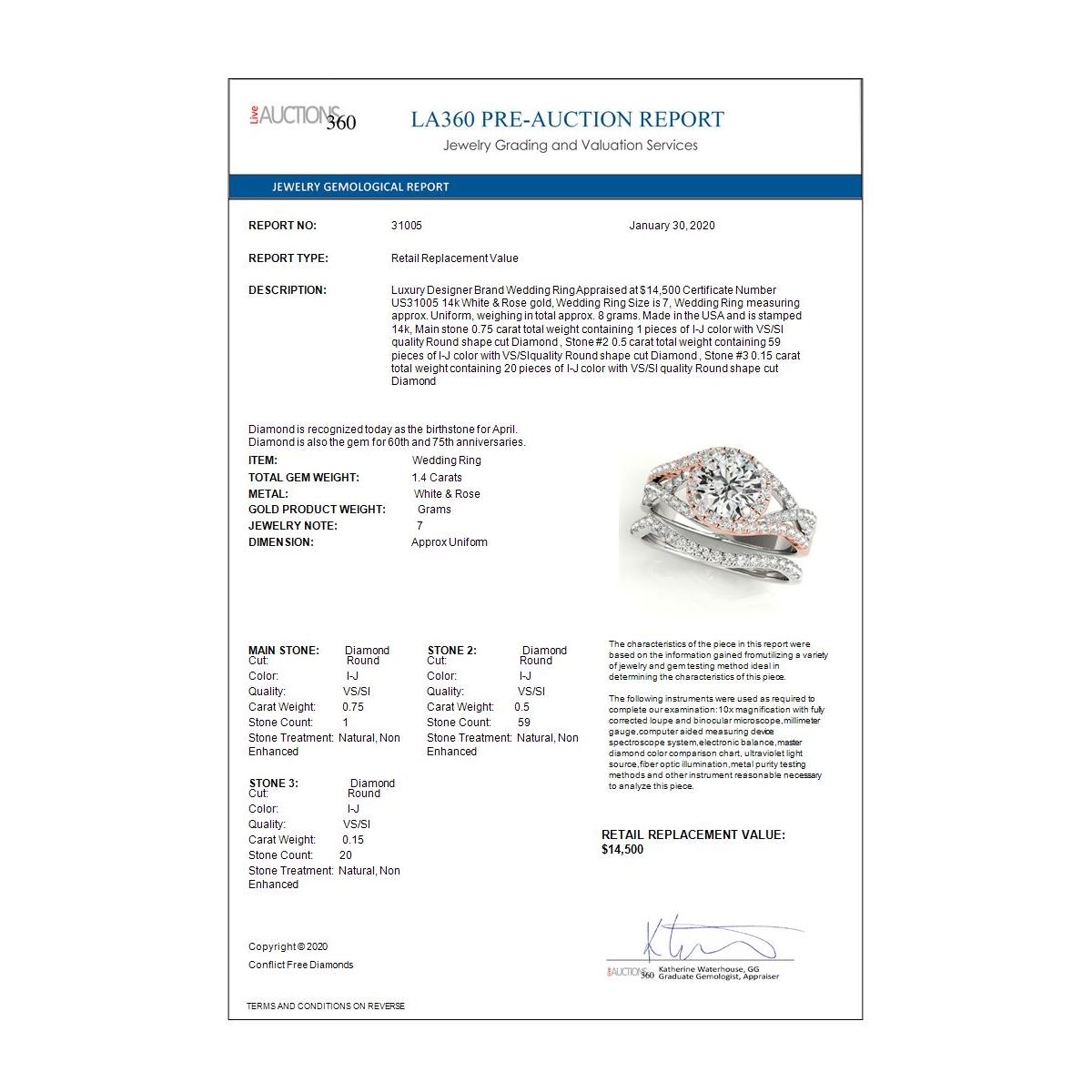 REF-197H8R - SKU: 31005 ---- 1.4 ctw Certified VS/SI Diamond 2pc Set Solitaire Halo 14k White & Rose Gold