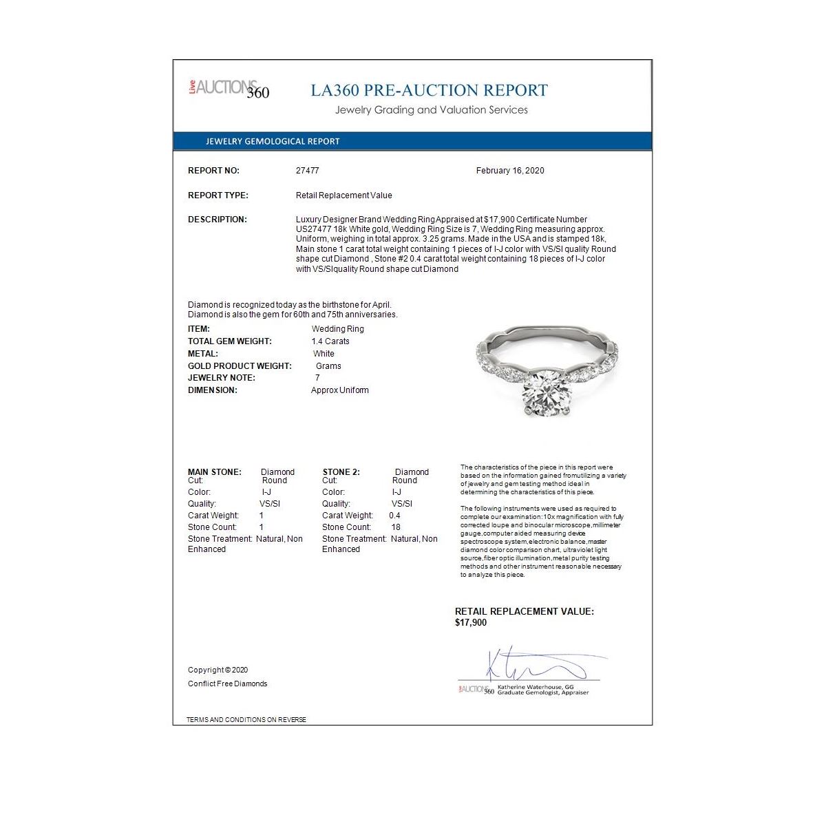 REF-271H3R - SKU: 27477 ---- 1.4 ctw Certified VS/SI Diamond Ring 18k White Gold