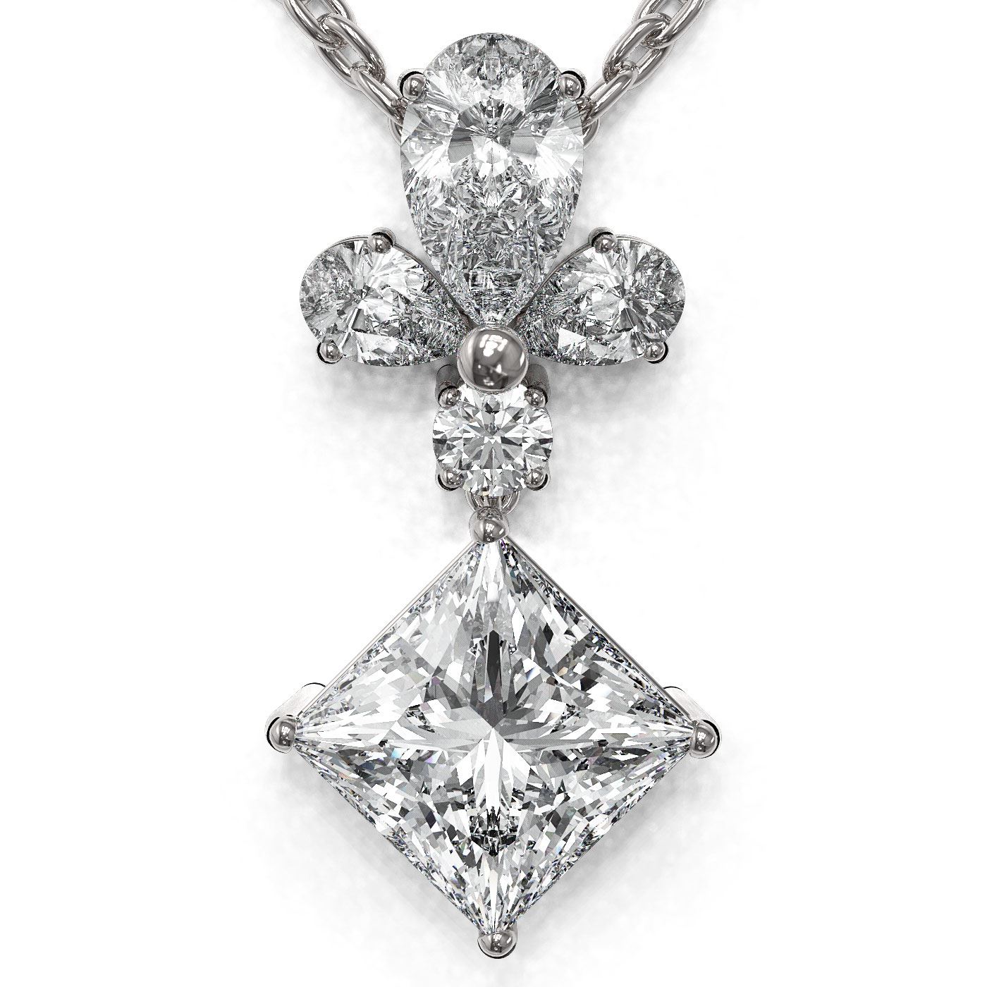 SKU: 48798 ---- 1.4 ctw Princess Cut Diamond Designer Necklace 18K White Gold