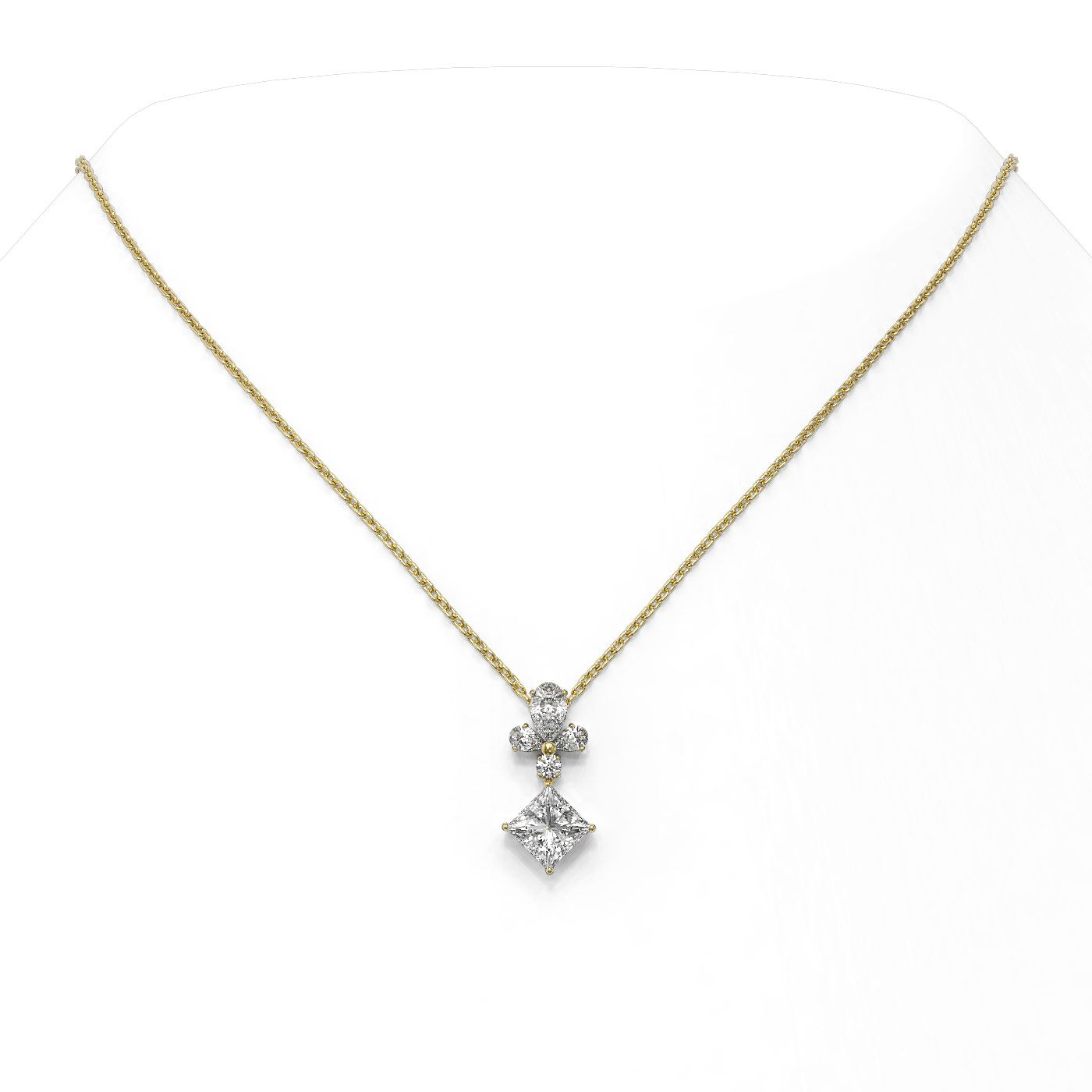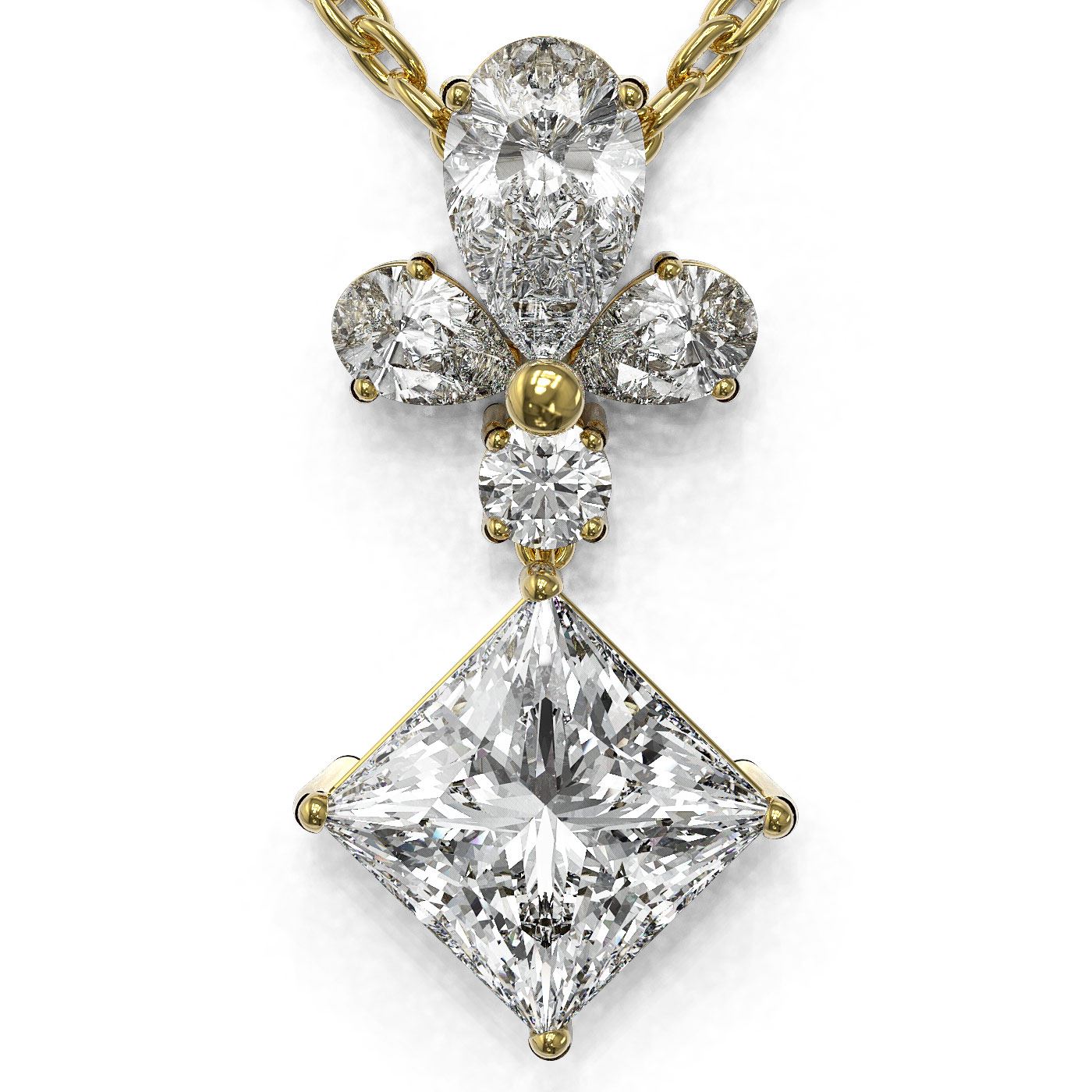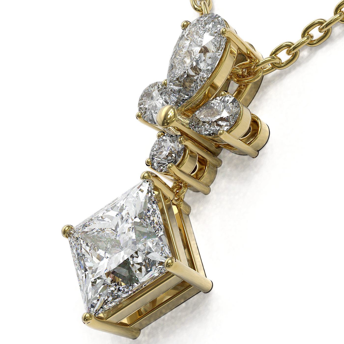 REF-181R2K - SKU: 48800 ---- 1.4 ctw Princess Cut Diamond Designer Necklace 18K Yellow Gold