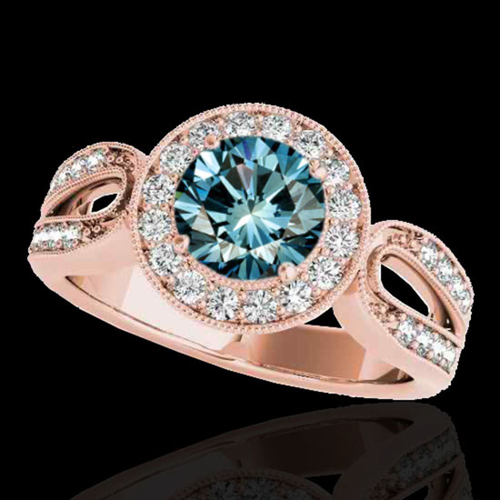 REF-130W6H - SKU: 34564 ---- 1.4 ctw SI Certified Fancy Blue Diamond Solitaire Halo Ring 10k Rose Gold
