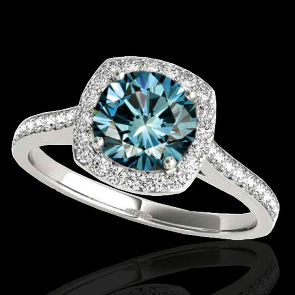 REF-132K3Y - SKU: 34189 ---- 1.4 ctw SI Certified Fancy Blue Diamond Solitaire Halo Ring 10k White Gold