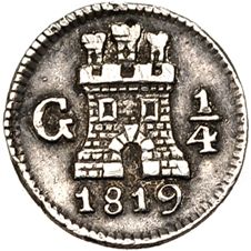 1/4 de real. 1819. Guatemala. VI-252. Rayitas. MBC+/ MBC.