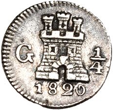 1/4 de real. 1820. Guatemala. VI-253. MBC+. Escasa.