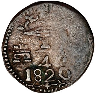 1/4 de real. 1820. Santa Marta. VI-94. Amplios vanos. MBC.