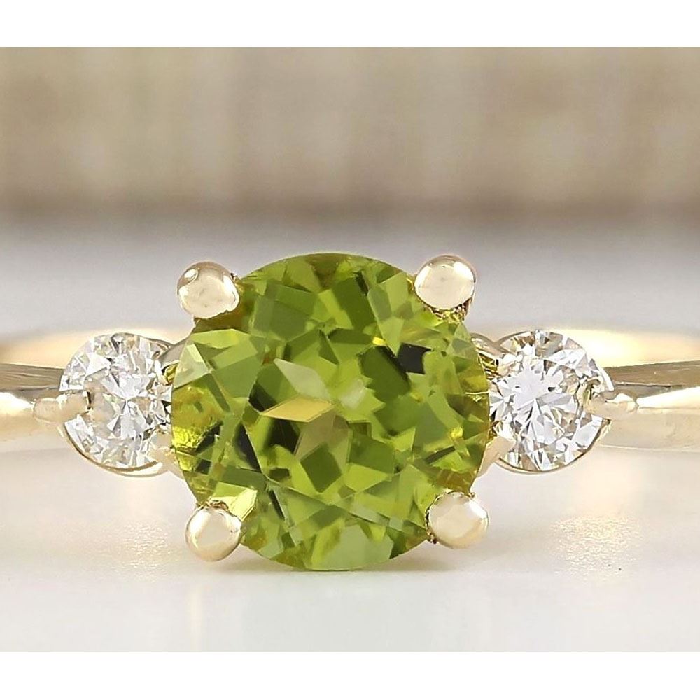 1.40 CTW Natural Peridot And Diamond Ring In 18K White Gold