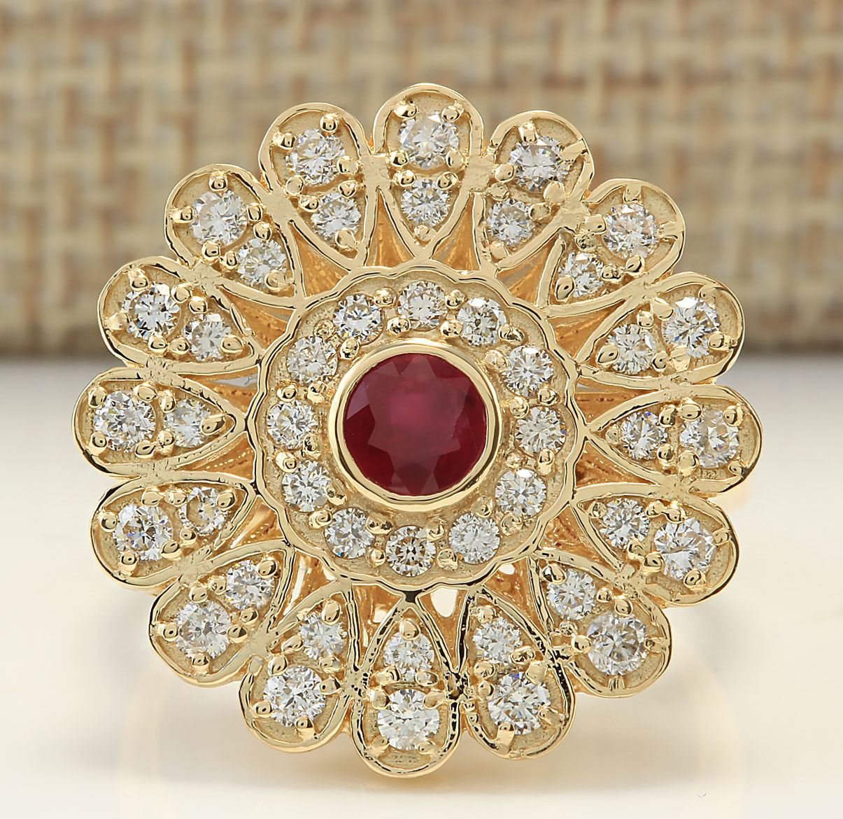 1.40 CTW Natural Ruby And Diamond Ring In 18K Yellow Gold