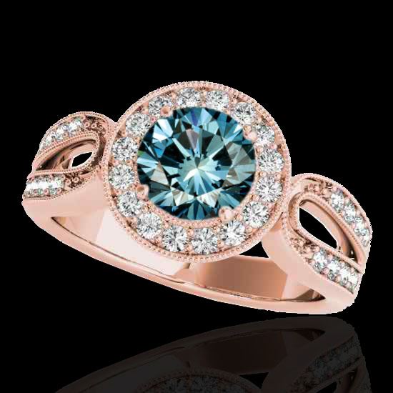 34564 - REF-174M2F ---- 1.40 CTW SI Certified Fancy Blue Diamond Solitaire Halo Ring 10K Rose Gold ---- Luxury Designer Brand Ring Appraised at $10,550 Certificate Number US34564  10k Rose gold,  Ring Size is 7, Ring measuring approx. Uniform, weighing in total approx. 7 grams. Made in the USA and is stamped 10k, Main stone 1 carat total weight containing 1 pieces of Intense Fancy Blue color with SI  quality Round shape cut Diamond , Stone #2 0.4 carat total weight containing 32 pieces of H-I color with  VS/SI quality Round shape cut Diamond