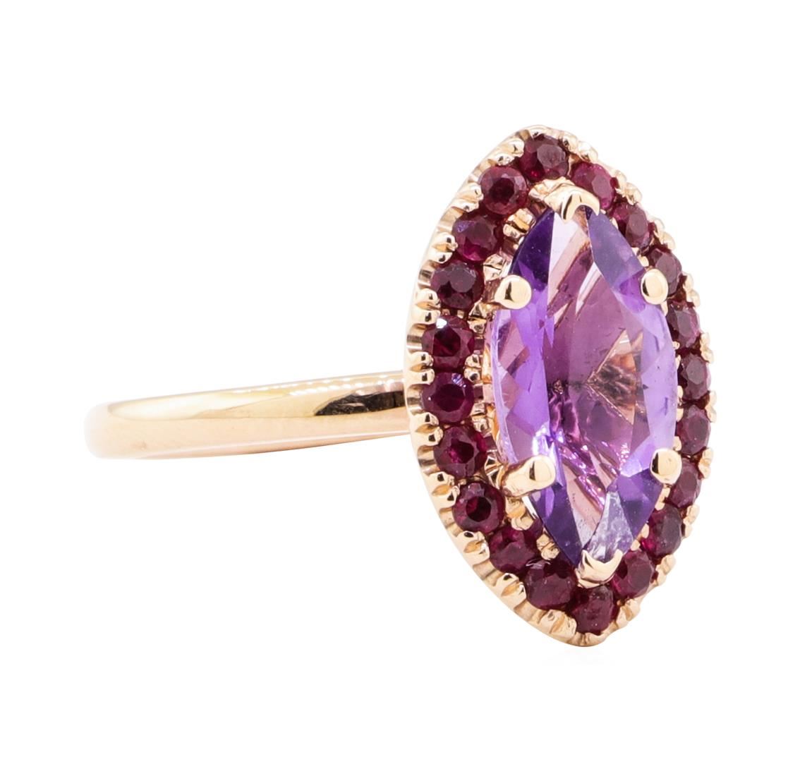 One ring featuring: 14KT rose gold weighing 3.7 grams containing one amethyst weighing 1.00ct and rubies weighing 0.40ctw.