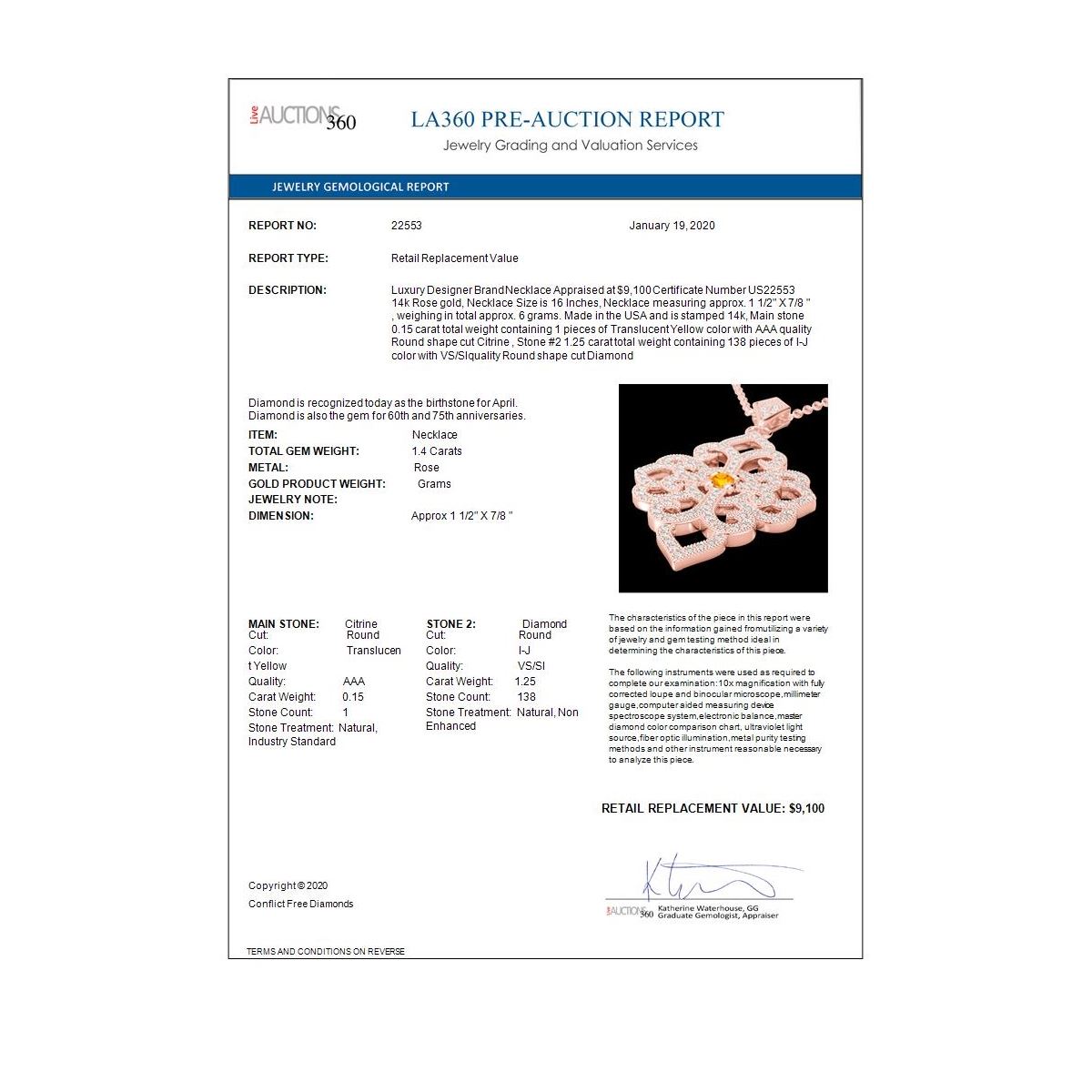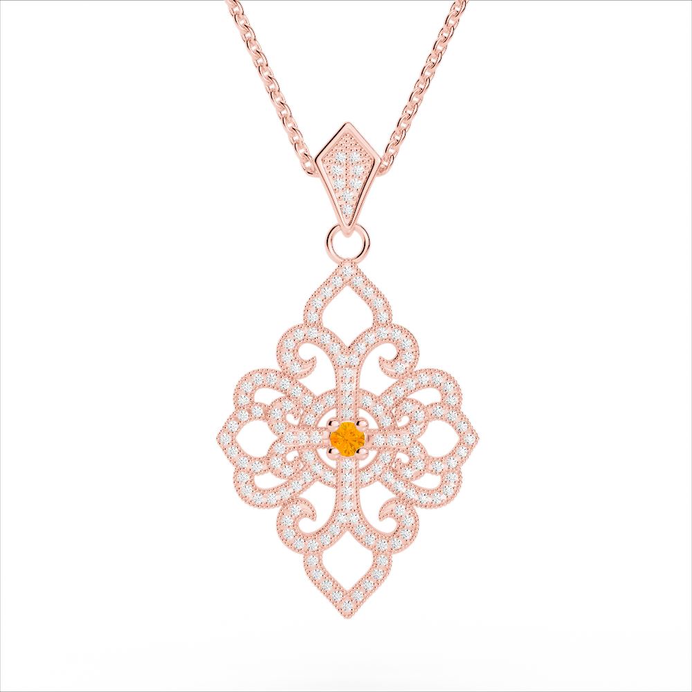 REF-127H3R - SKU: 22553 ---- 1.40 ctw Citrine & Micro Pave VS/SI Diamond Necklace 14k Rose Gold