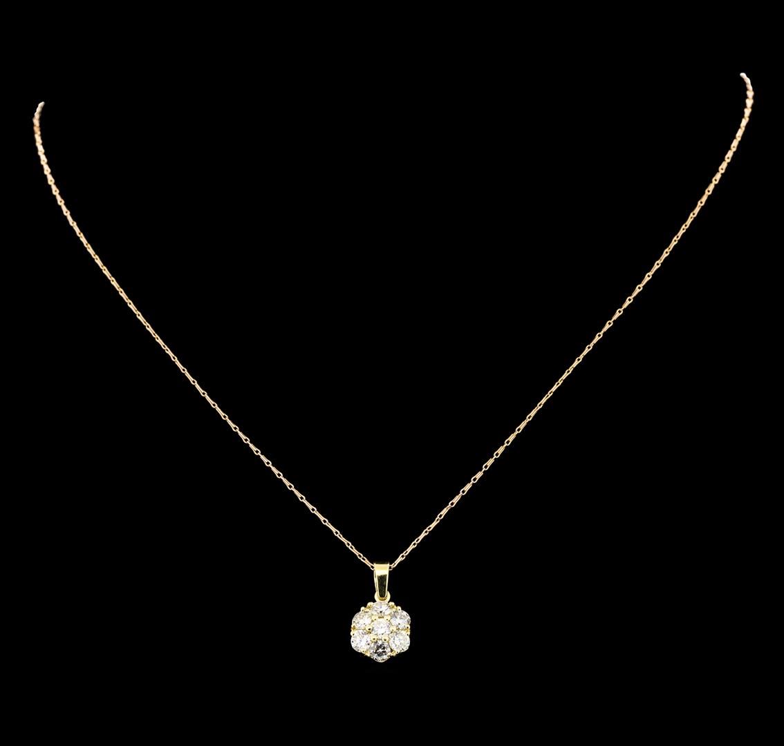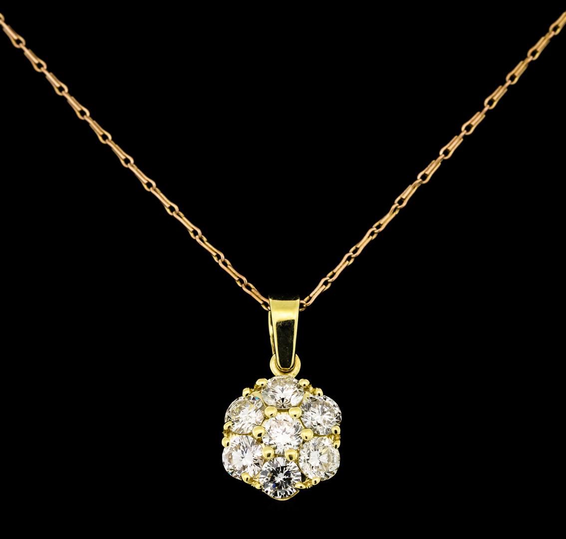 One electronically tested 14KT yellow and rose gold lady's combination cast & assembled fashion pendant & chain 16.0' long, 1mm fancy link with a spring ring clasp with a bright polish finish. Identified with markings of '14K'. Condition is new, good workmanship. Containing: Seven prong set round brilliant cut diamonds, measuring 3.80 - 3.70 x 2.33mm (depth est.) approximate total weight of 7 Stones = 1.40ct. Graded in the setting. Clarity SI-1 to SI-3. Color: H - I Cut Good. Total Weight of Diamonds 1.40ct.. Total Weight of Pendant & Chain 3.40gm GAS Appraised at $4,990.00.