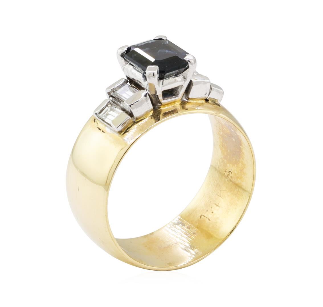 One ring featuring: 14KT yellow gold weighing 5.6 grams containing one green tourmaline weighing 1.00 ct and four baguette diamonds weighing 0.40 ctw