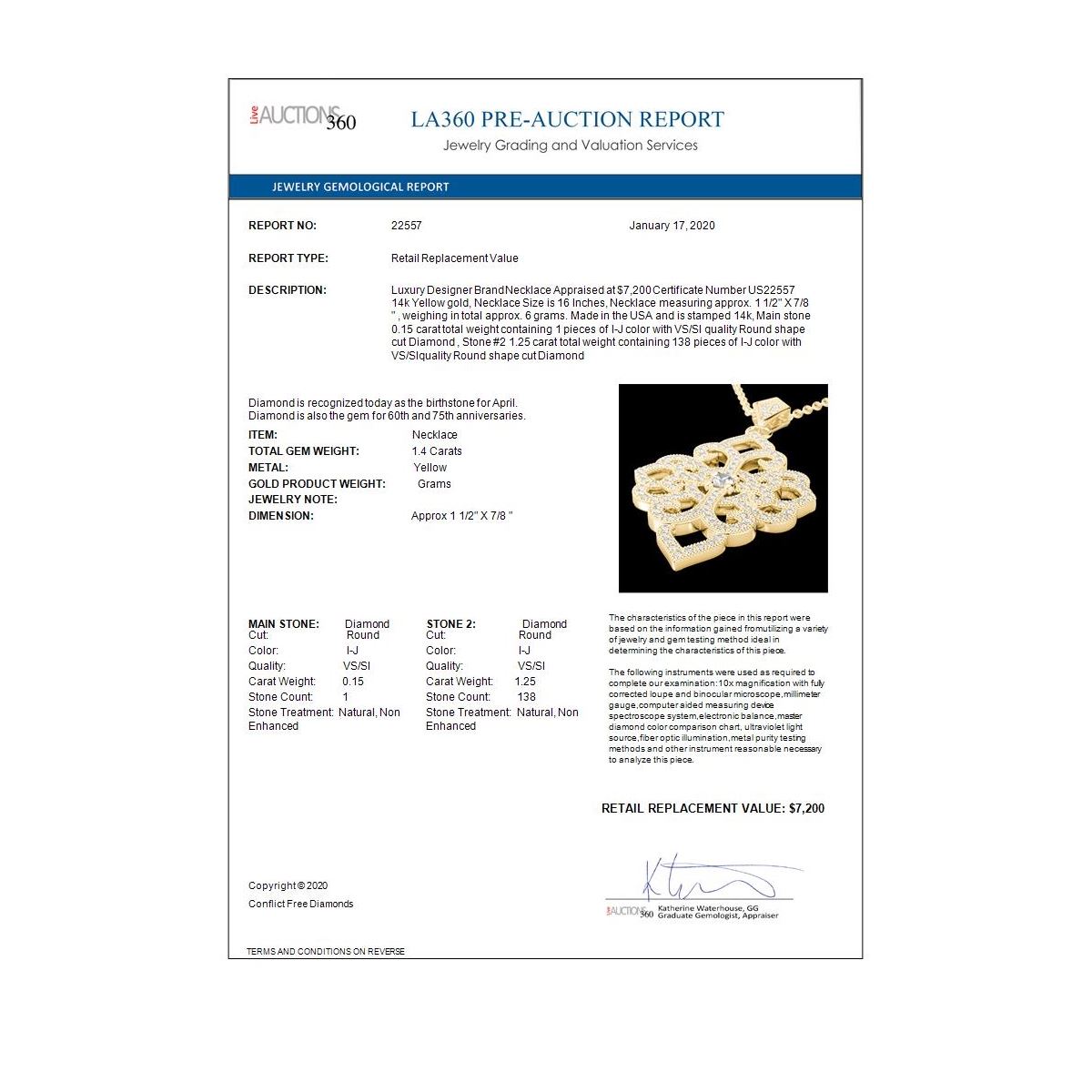 REF-130G9W - SKU: 22557 ---- 1.40 ctw Micro Pave VS/SI Diamond Designer Necklace 14k Yellow Gold