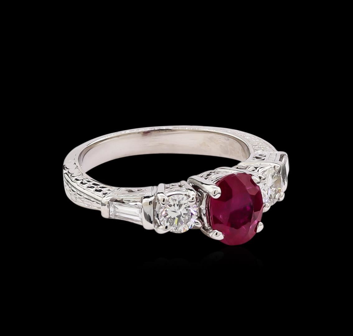 One ring featuring: Platinum weighing 8.30 grams containing one ruby with a total weight of 1.40ct and side diamonds with a total weight of 0.75ct.
