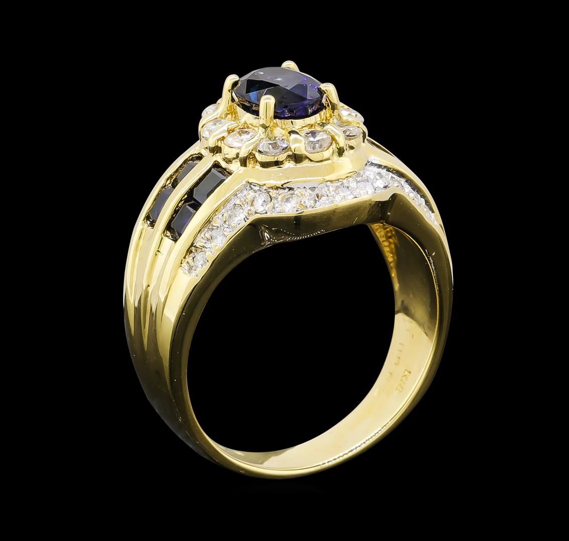 One ring featuring: 18KT Yellow Gold containing Sapphire with a total weight of 1.40ct and Diamonds with a total weight of 0.63ct. Total Weight of Ring: 10.2 grams.