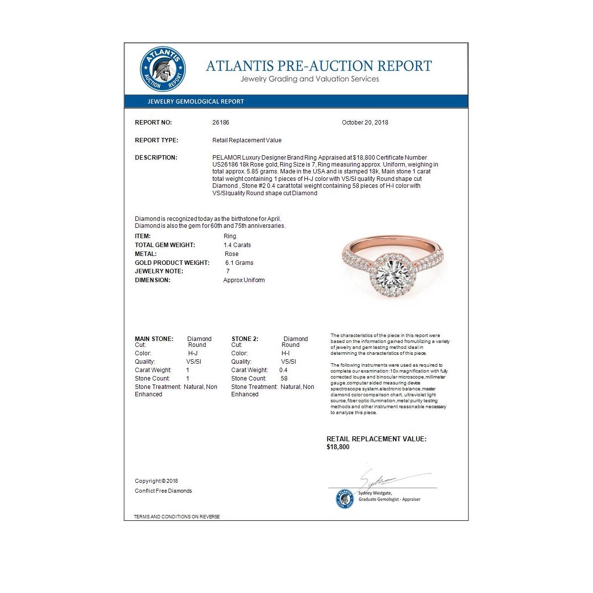 Total Gem weight: 1.4 carats
