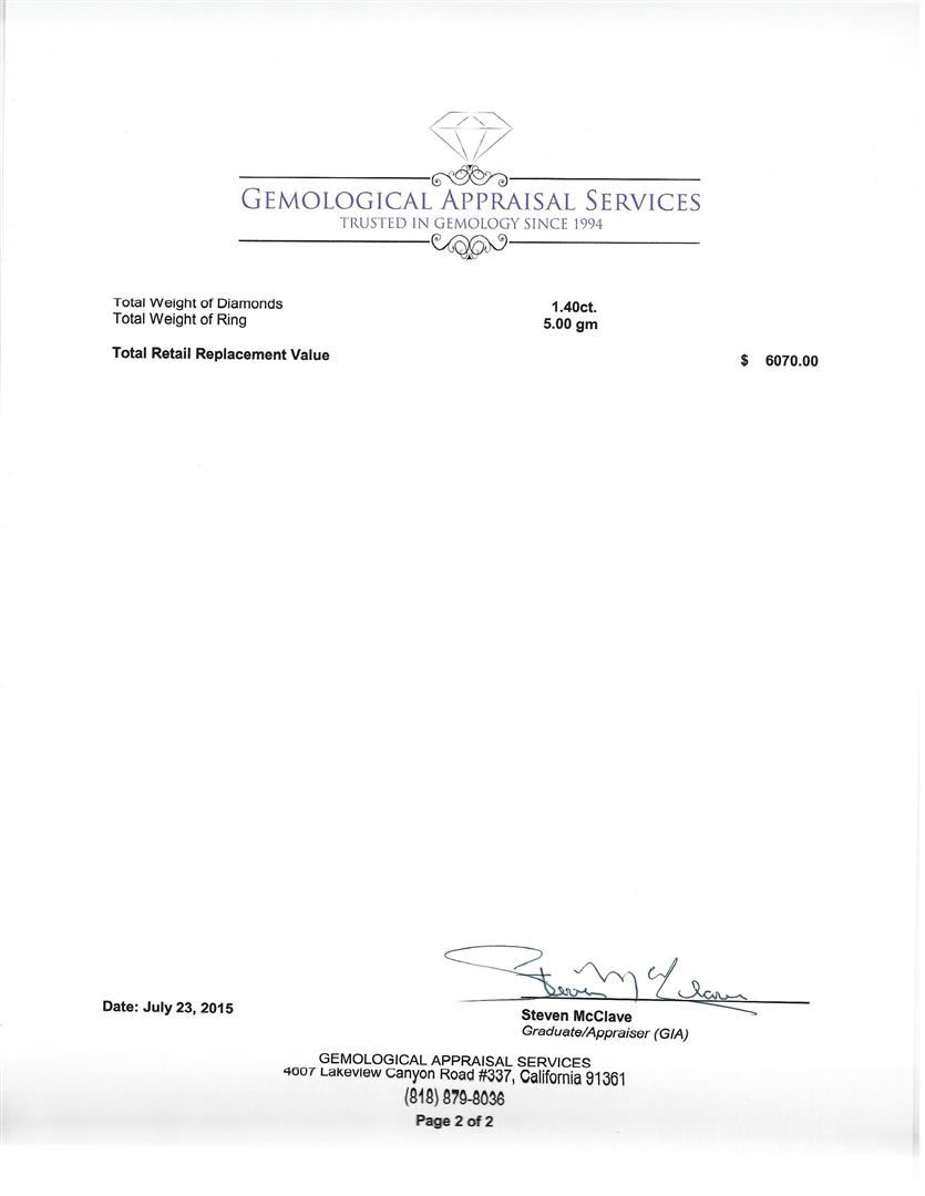 Regarding Appraised Jewelry, Watches and Loose Stones –
