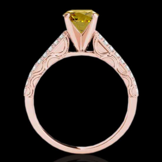 REF-176A4X -34701 ---- 1.41 CTW Certified Si Intense Yellow Diamond Solitaire Antique Ring 10K Rose Gold ---- Luxury Designer Brand Ring Appraised at $11,650 Certificate Number US34701 10k Rose gold, Ring Size is 7, Ring measuring approx. Uniform, weighing in total approx. 3.6 grams. Made in the USA and is stamped 10k, Main stone 1 carat total weight containing 1 pieces of Intense Fancy Yellow color with SI quality Round shape cut Diamond , Stone #2 0.41 carat total weight containing 36 pieces of H-I color with VS/SI quality Round shape cut Diamond