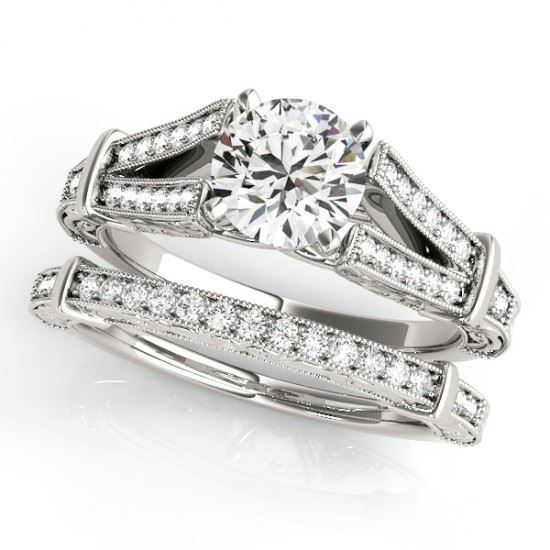 REF-396W8F -31466 ---- 1.41 CTW Certified VS/SI Diamond Solitaire 2Pc Wedding Set Antique 14K White Gold ---- Luxury Designer Brand 2 Pc Set Appraised at $21,800 Certificate Number US31466 14k White gold, 2 Pc Set Size is 7, 2 Pc Set measuring approx. Uniform, weighing in total approx. 9.4 grams. Made in the USA and is stamped 14k, Main stone 1 carat total weight containing 1 pieces of H-J color with VS/SI quality Round shape cut Diamond , Stone #2 0.25 carat total weight containing 28 pieces of H-I color with VS/SI quality Round shape cut Diamond , Stone #3 0.16 carat total weight containing 17 pieces of G-H color with VS/SI quality Round shape cut Diamond