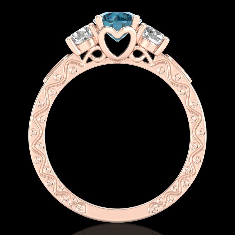 REF-180F2N -37762 ---- 1.41 CTW Intense Blue Diamond Solitaire Art Deco 3 Stone Ring 18K Rose Gold ---- Luxury Designer Brand 3 stone ring Appraised at $10,900 Certificate Number US37762 18k Rose gold, 3 stone ring Size is 7, 3 stone ring measuring approx. Uniform, weighing in total approx. 7.5 grams. Made in the USA and is stamped 18k, Main stone 0.77 carat total weight containing 1 pieces of Intense Fancy Blue color with SI quality Round shape cut Diamond , Stone #2 0.53 carat total weight containing 2 pieces of H-I color with VS/SI quality Round shape cut Diamond , Stone #3 0.11 carat total weight containing 6 pieces of G-H color with VS/SI quality Round shape cut Diamond