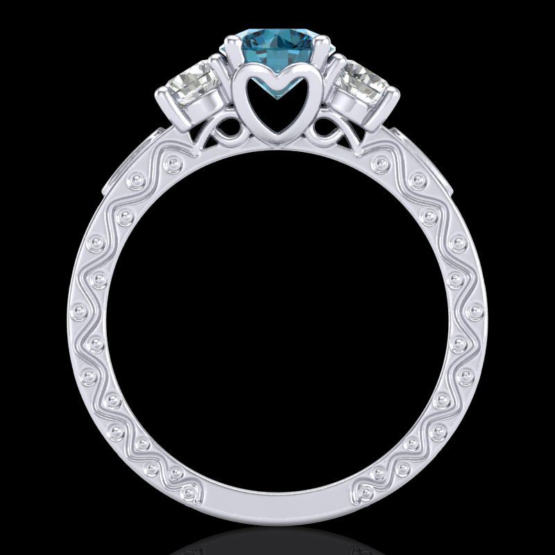 REF-180K2W -37761 ---- 1.41 CTW Intense Blue Diamond Solitaire Art Deco 3 Stone Ring 18K White Gold ---- Luxury Designer Brand 3 stone ring Appraised at $10,900 Certificate Number US37761 18k White gold, 3 stone ring Size is 7, 3 stone ring measuring approx. Uniform, weighing in total approx. 7.5 grams. Made in the USA and is stamped 18k, Main stone 0.77 carat total weight containing 1 pieces of Intense Fancy Blue color with SI quality Round shape cut Diamond , Stone #2 0.53 carat total weight containing 2 pieces of H-I color with VS/SI quality Round shape cut Diamond , Stone #3 0.11 carat total weight containing 6 pieces of G-H color with VS/SI quality Round shape cut Diamond