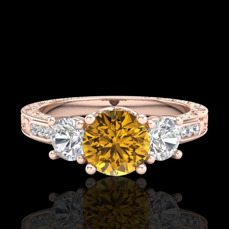 REF-180M2H -37764 ---- 1.41 CTW Intense Fancy Yellow Diamond Art Deco 3 Stone Ring 18K Rose Gold ---- Luxury Designer Brand 3 stone ring Appraised at $11,900 Certificate Number US37764 18k Rose gold, 3 stone ring Size is 7, 3 stone ring measuring approx. Uniform, weighing in total approx. 7.5 grams. Made in the USA and is stamped 18k, Main stone 0.77 carat total weight containing 1 pieces of Intense Fancy Yellow color with SI quality Round shape cut Diamond , Stone #2 0.53 carat total weight containing 2 pieces of H-I color with VS/SI quality Round shape cut Diamond , Stone #3 0.11 carat total weight containing 6 pieces of G-H color with VS/SI quality Round shape cut Diamond