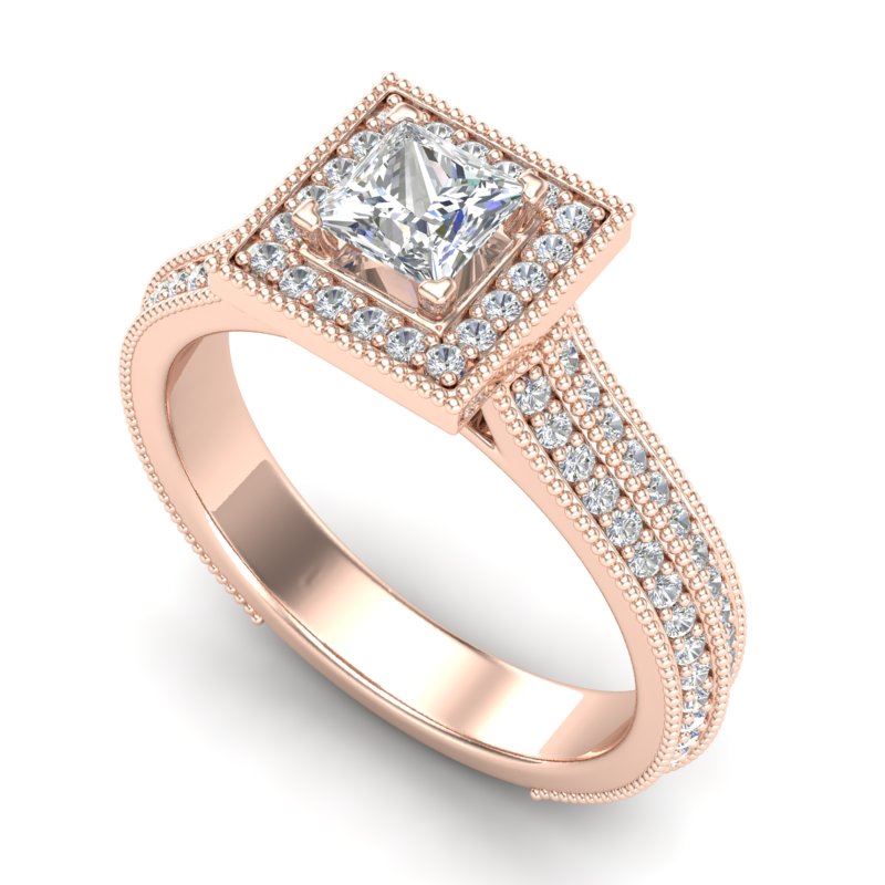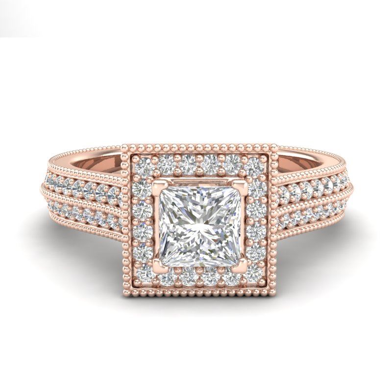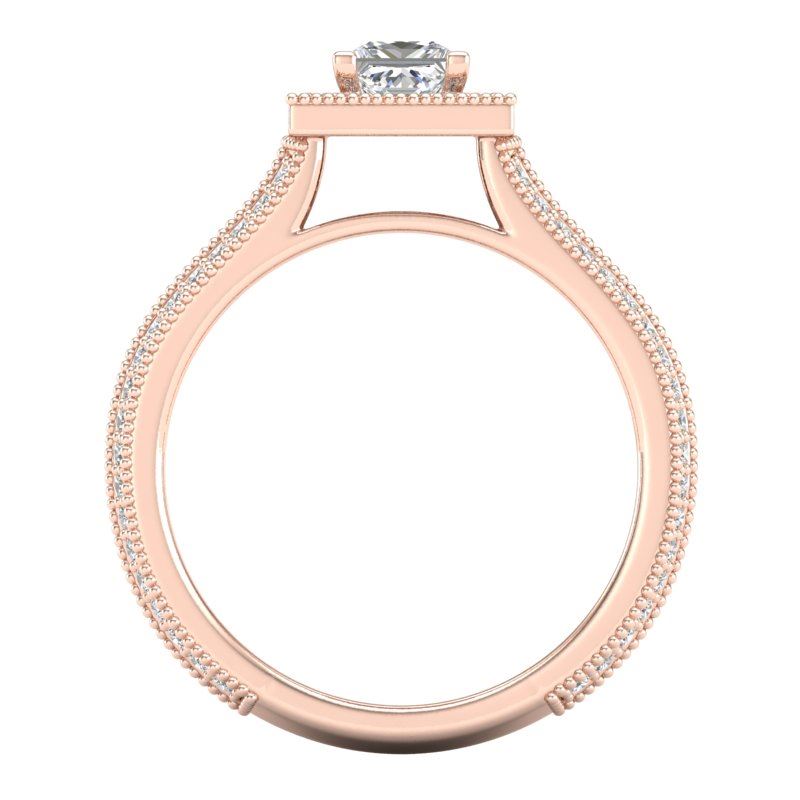 REF-200X2T -37179 ---- 1.41 CTW Princess VS/SI Diamond Solitaire Micro Pave Ring 18K Rose Gold ---- Luxury Designer Brand Ring Appraised at $11,000 Certificate Number US37179 18k Rose gold, Ring Size is 7, Ring measuring approx. Uniform, weighing in total approx. 9 grams. Made in the USA and is stamped 18k, Main stone 0.55 carat total weight containing 1 pieces of H-J color with VS/SI quality Princess shape cut Diamond , Stone #2 0.86 carat total weight containing 96 pieces of H-I color with VS/SI quality Round shape cut Diamond