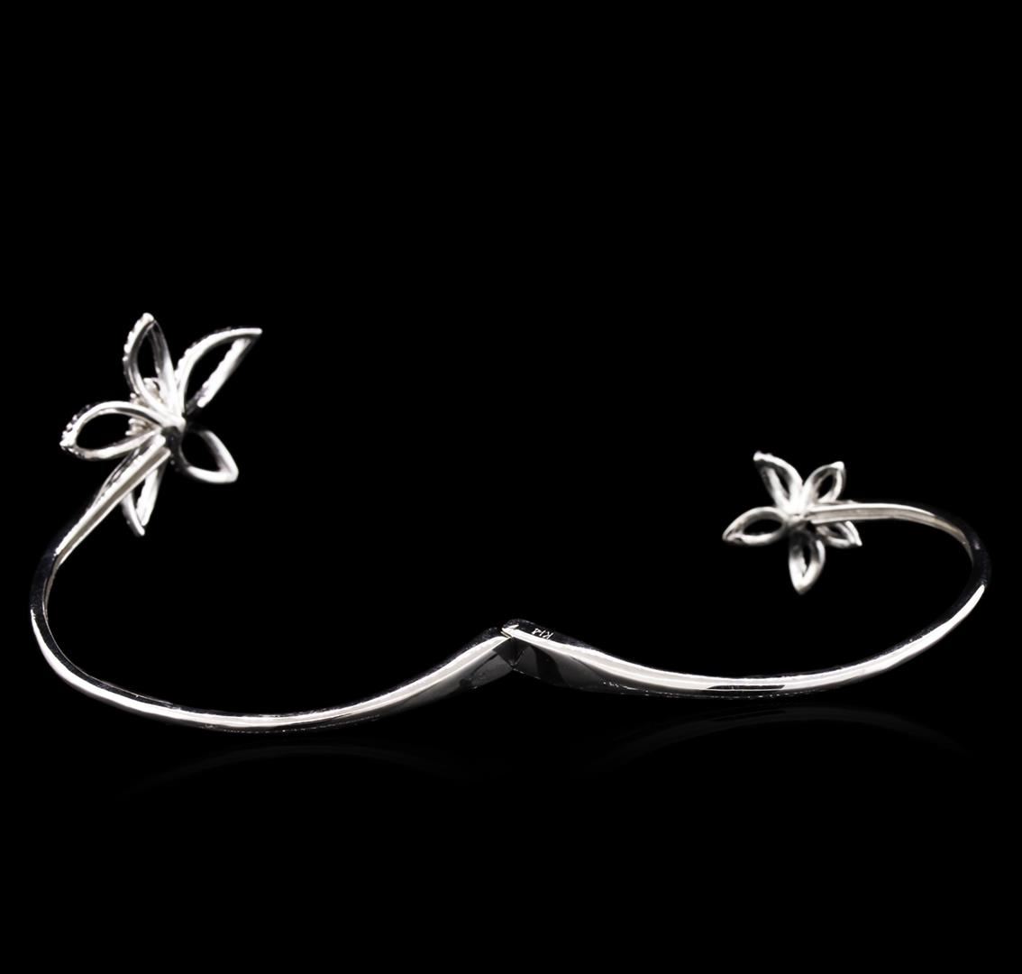 One electronically tested 14KT white gold lady's combination cast & assembled bangle bracelet with a hinged clasp with a bright polish finish. The featured bracelet measures 6.5 inches in length. Identified with markings of "K14". Condition is new, good workmanship. Containing: Thirteen prong set round brilliant cut diamonds, measuring 2.50 - 2.00 x 1.46mm (depth est.) approximate total weight of 13 Stones = 0.46ct. Graded in the setting. Clarity: SI-1 to SI-2. Color: H - I. Cut Good One Hundred Seventeen split prong set round brilliant cut diamonds, measuring 1.30 - 1.20 x 0.81mm (depth est.) approximate total weight of 117 Stones = 0.95ct. Graded in the setting. Clarity: SI-2 to I-1. Color: H - I. Cut Good. Total Weight of Diamonds 1.41ct. Total Weight of Bracelet 11.40gm. GAS Appraised at $5,640.00.