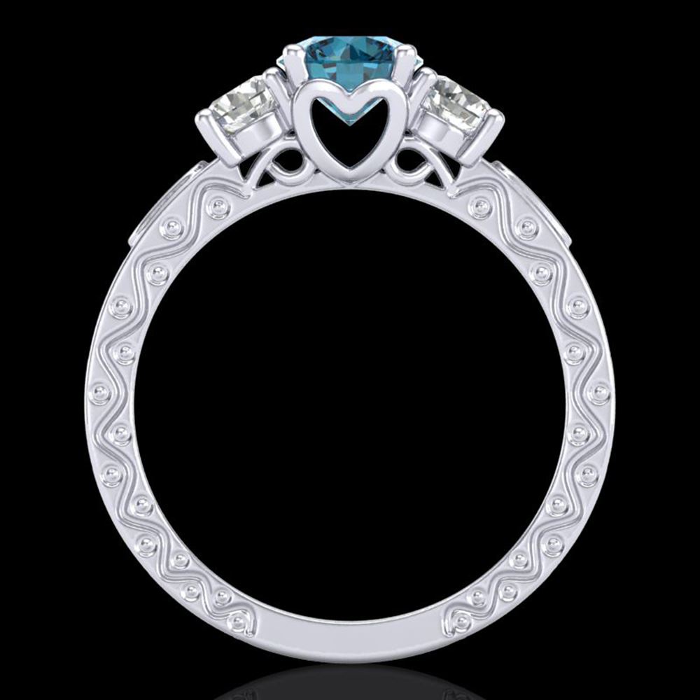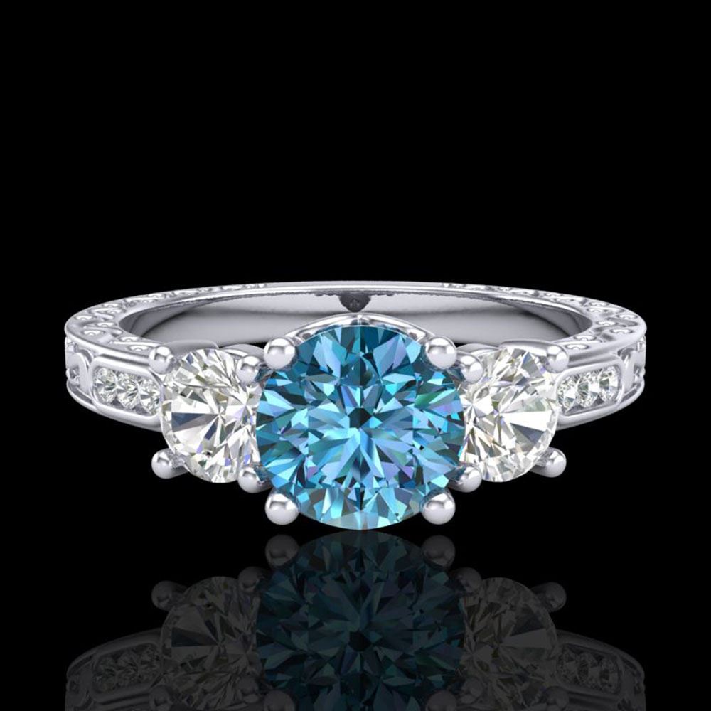REF-180X2A - SKU: 37761 ---- 1.41 ctw Intense Blue Diamond Art Deco 3 Stone Ring 18k White Gold