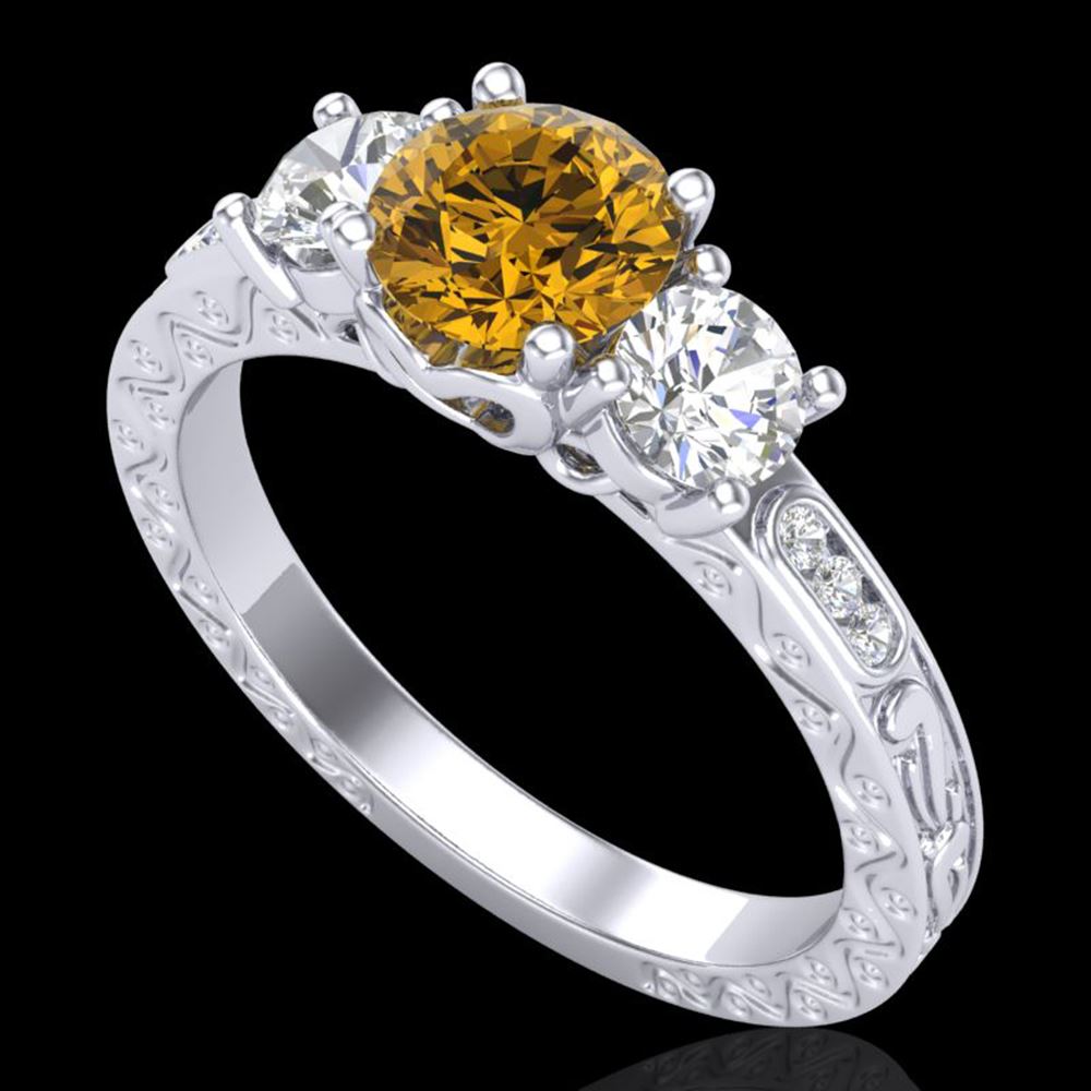 REF-227F3M - SKU: 37763 ---- 1.41 ctw Intense Fancy Yellow Diamond Art Deco Ring 18k White Gold