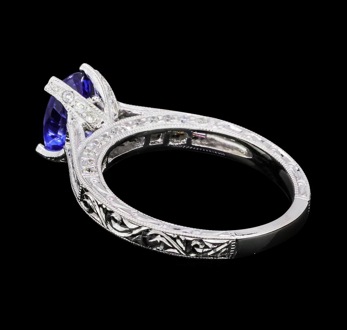One lady's ring featuring: 18KT white gold weighing containing one sapphire weighing 1.41ct and diamonds weighing 0.68ctw