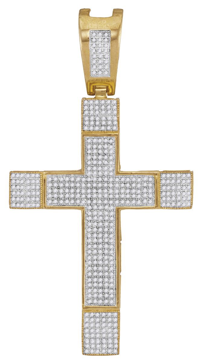 REF-179K9W ---- 1.42 CTW Mens Natural Diamond Roman Cross Charm Pendant 10K Yellow Gold - SKU: GD38574