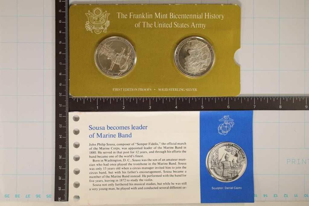 HISTORY OF THE USARMY PF ROUNDS, IN ORIGINAL FRANKLIN MINT PACKAGING WITH ONLY 1 PAPERWORK.