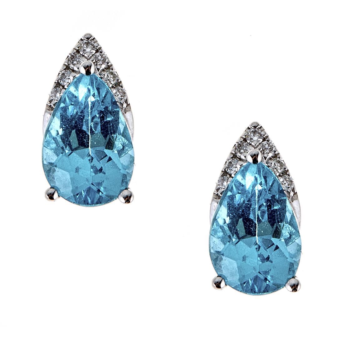 One pair of earrings featuring: 18KT white gold weighing 1.52 grams containing two pear cut apatite with a total weight of 1.42 ctw and diamonds weighing a total of 0.04 ctw.