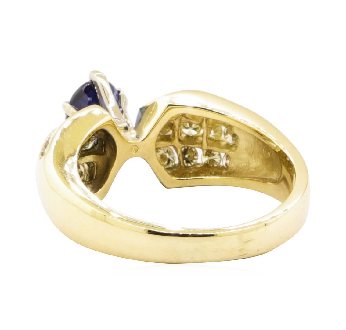 One ring featuring: 14KT yellow gold weighing 5.2 grams containing one blue sapphire weighing 0.92ct and diamonds weighing 0.50ctw.