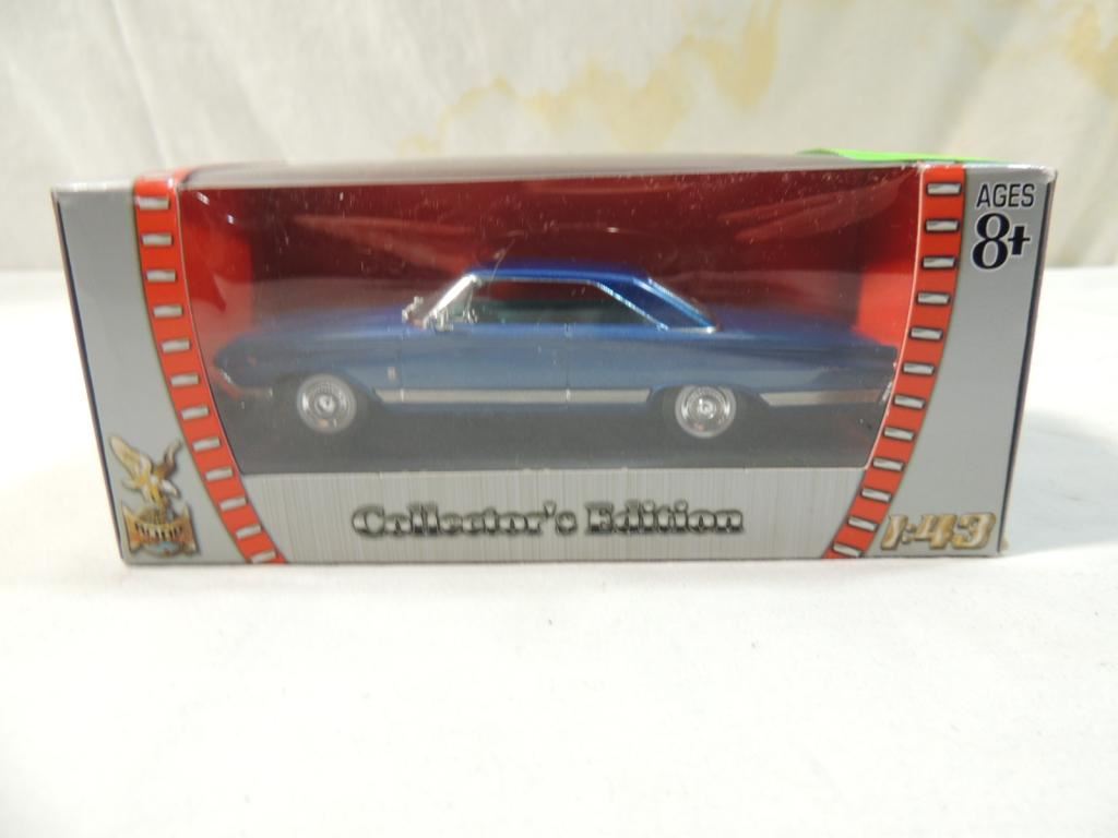 DIE CAST METAL WITH PLASTIC PARTS, 1:43 SCALE MODEL, DECORATIVE CAR MODEL, COLLECTORS EDITION, COLLECTIBLE NEW IN PACKAGE AS SHOWN SEE PHOTO FOR MORE DETAILS.