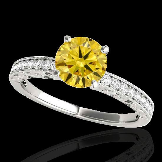 REF-180M2H -34619 ---- 1.43 CTW Certified Si Intense Yellow Diamond Solitaire Antique Ring 10K White Gold ---- Luxury Designer Brand Ring Appraised at $11,900 Certificate Number US34619 10k White gold, Ring Size is 7, Ring measuring approx. Uniform, weighing in total approx. 3.8 grams. Made in the USA and is stamped 10k, Main stone 1.25 carat total weight containing 1 pieces of Intense Fancy Yellow color with SI quality Round shape cut Diamond , Stone #2 0.18 carat total weight containing 18 pieces of H-I color with VS/SI quality Round shape cut Diamond