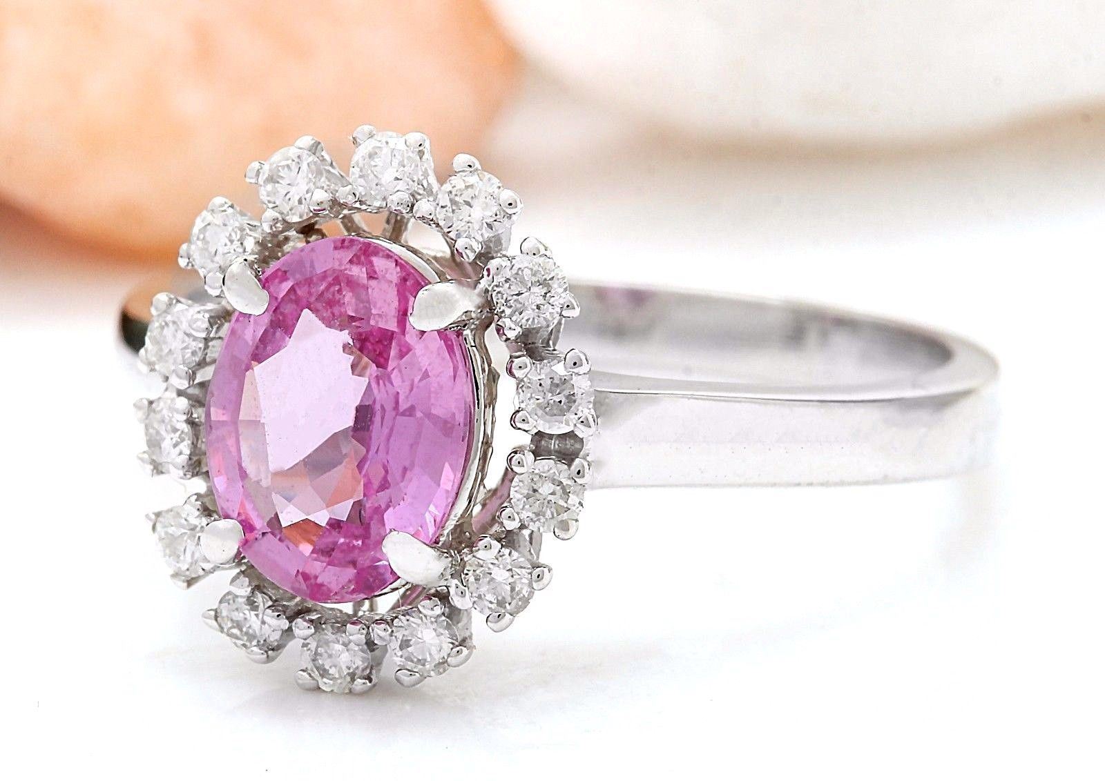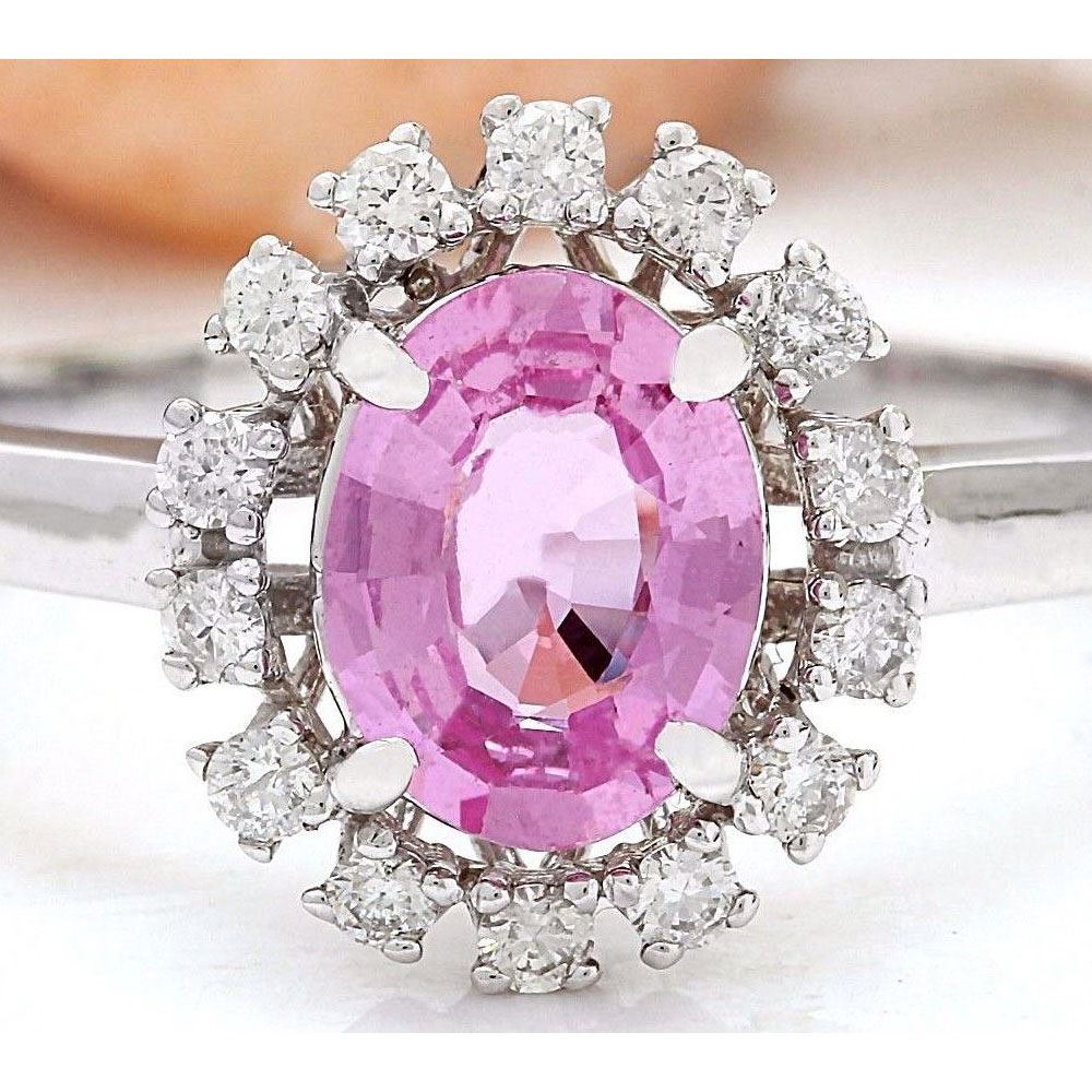 1.43 Carat Natural Sapphire 18K Solid White Gold Diamond Ring